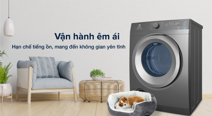 Máy sấy quần áo Electrolux dùng động cơ dây curoa có khả năng giảm thiểu tối đa tiếng ồn, không gây ảnh hưởng tới sinh hoạt của gia đình. Máy có độ ồn chỉ ở mức 63 dB (tương đương với tiếng nói chuyện thông thường) nên khá dễ chịu.