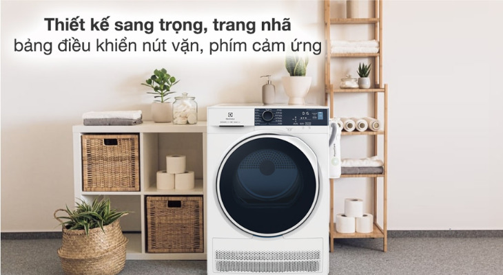 Máy sấy quần áo Electrolux sở hữu kiểu thiết kế cửa ngang nhỏ gọn, sang trọng, tiết kiệm diện tích sử dụng, phù hợp với mọi phong cách kiến trúc khác nhau.