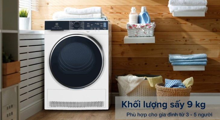 Máy sấy quần áo Electrolux sở hữu khối lượng sấy lớn lên tới 9kg, thích hợp với nhu cầu giặt sấy của đa số gia đình khác nhau. Các dòng sản phẩm máy sấy quần áo Electrolux phù hợp với những gia đình có từ 3 - 5 thành viên.