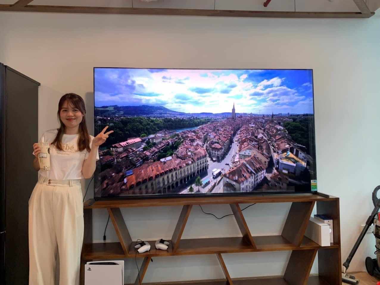 Bên cạnh đó, đối với những căn phòng rộng hay không gian lớn thì bạn nên để khoảng cách vị trí ngồi với tivi nhiều hơn hoặc treo tivi cao hơn khoảng cách với mặt đất một chút.