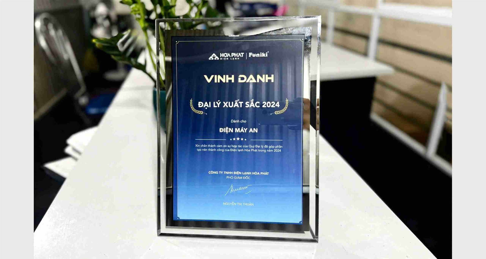 Điện Máy Quang Hưng vinh dự đón nhận danh hiệu "Đại lý xuất sắc năm 2024" do Công ty TNHH Điện lạnh Hòa Phát - Funiki trao tặng. Đây là sự khẳng định mạnh mẽ cho uy tín, sự tận tâm và chuyên nghiệp của Điện máy Quang Hưng trong lĩnh vực phân phối điều hòa.