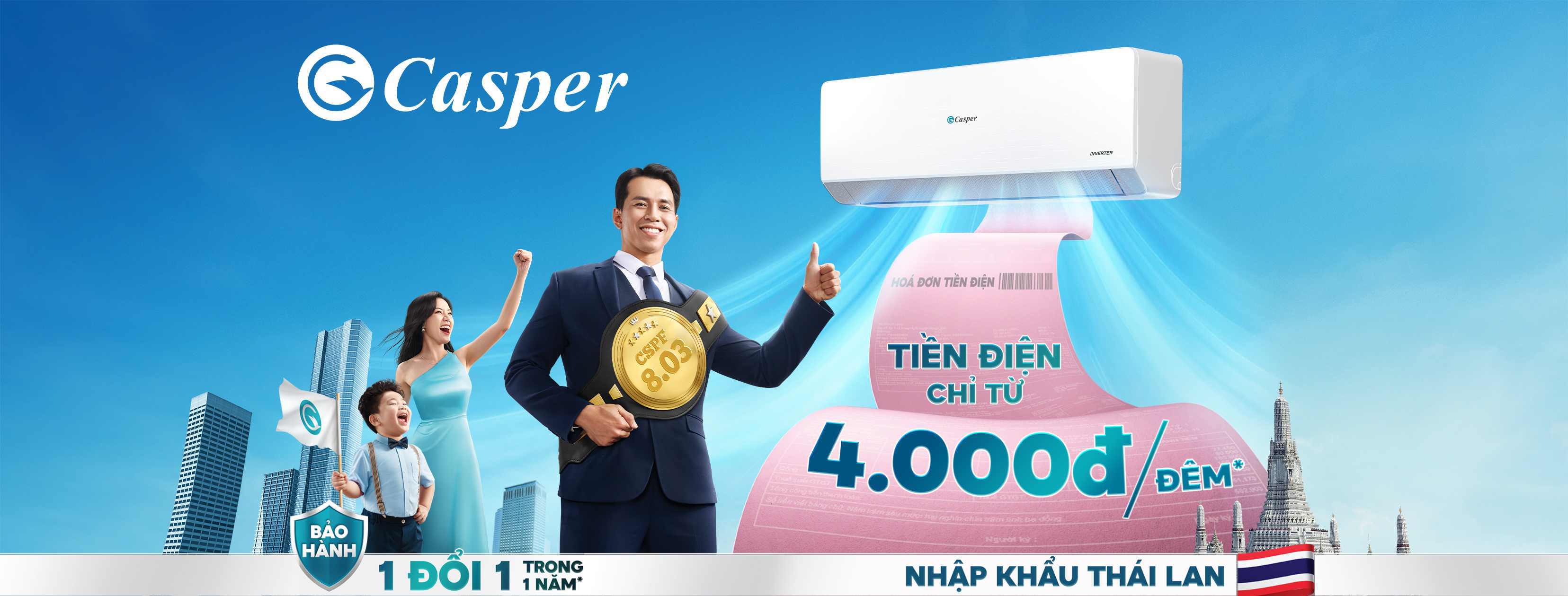 Sau 5 năm phân phối Casper tại thị trường Việt Nam, Casper đứng top 3 ngành điều hòa, chỉ sau Panasonic và Daikin (đứng rất sát vị trí số 2), riêng ngành điều hòa máy cơ đứng vị trí số 1. Trong đó, 1,2/phút chính là sản lượng điều hòa Casper được bán ra trong một phút.