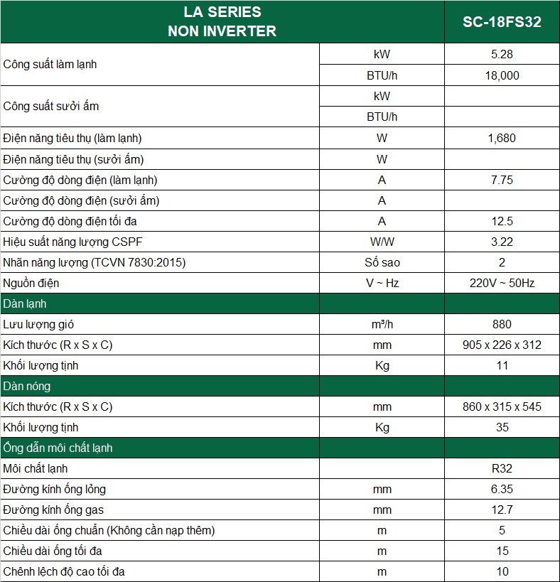 Với công suất 18000btu, chiếc điều hòa Casper 1 chiều SC-18FS32 này sẽ là lựa chọn rất lý tưởng cho những căn phòng có diện tích từ 20 - 30 m2.