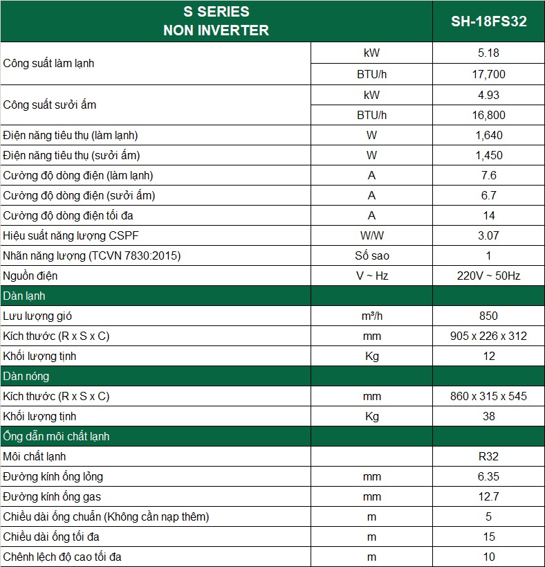 Với công suất 18000btu, chiếc điều hòa Casper 2 chiều SH-18FS32 này sẽ là lựa chọn rất lý tưởng cho những căn phòng có diện tích từ 20 - 30m2.