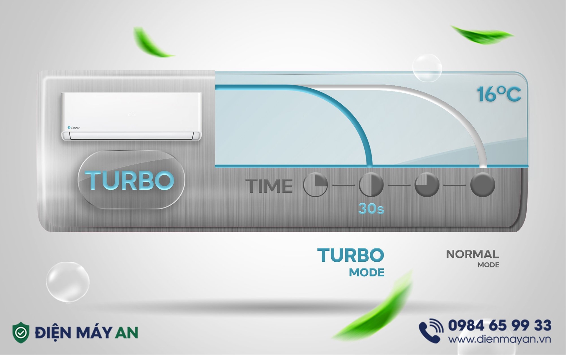 Điều hòa Casper 1 chiều SC-09FS36 hướng tới sự hoạt động bền bỉ và mạnh mẽ xuất phát từ máy nén – trái tim của hệ thống làm lạnh khỏe mạnh. Kích hoạt chế độ Turbo, điều hòa được hoạt động ở cấp độ thổi gió lớn nhất đem tới hiệu quả làm mát cực nhanh chỉ trong 30s, giúp người dùng có thể tận hưởng được ngay bầu không khí mát lành dễ chịu.