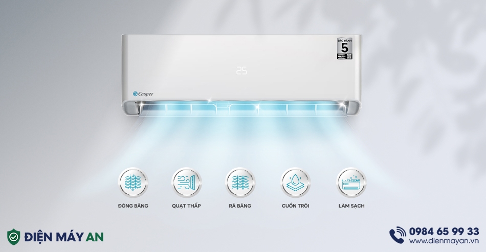 Điều hoà dân dụng Casper SC-09FS36 được nhập khẩu nguyên chiếc từ Thái Lan, với máy nén được bảo hành lên tới 5 năm, giúp người dùng hoàn toàn yên tâm về chất lượng cũng như độ bền trong thời gian dài sử dụng.