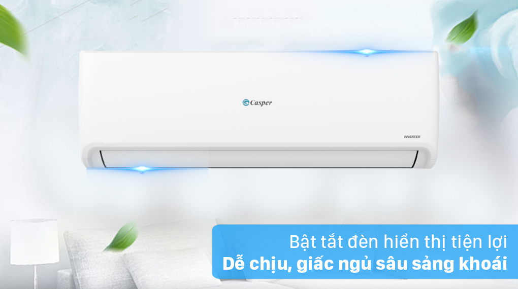 Điều hòa Casper Inverter 12000 BTU 1 chiều GC-12IS32 không những sở hữu gam màu trắng với các đường cong mềm mại, người dùng có thể tùy chọn chế độ bật - tắt đèn hiển thị trên điều hòa, đem tới cảm giác dễ chịu trong căn phòng tối, giúp người dùng và cả gia đình ngủ ngon giấc hơn.