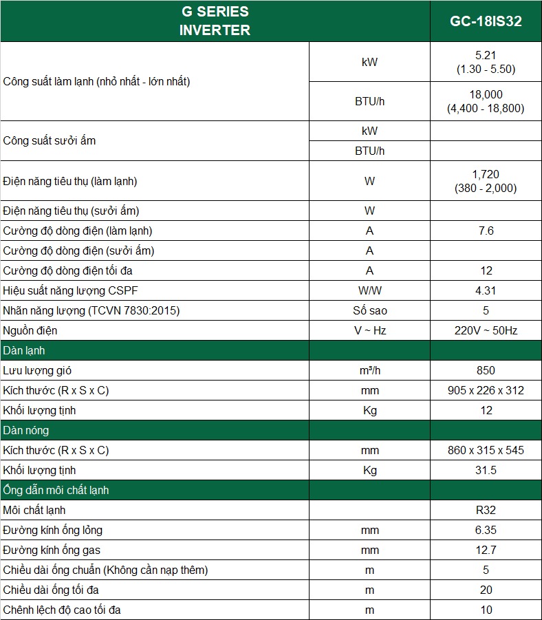 Điều hòa Casper Inverter GC-18IS32 với công suất 18000 BTU, thích hợp lắp đặt cho những căn phòng có diện tích từ 20 tới 30 m2, giúp máy hoạt động ổn định và bền bỉ trong suốt thời gian sử dụng cũng như đem lại hiệu quả làm mát tối ưu.