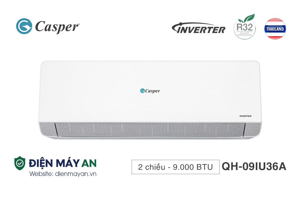 - Điều hòa Casper QH-09IU36A sử dụng gas R32 tiên tiến, có hiệu suất làm lạnh cao, thân thiện môi trường, an toàn cho người dùng và không gây hiệu ứng nhà kính.