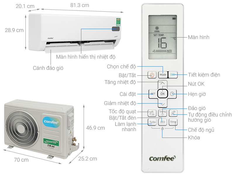 - Đặc biệt, điều hoà Comfee CFS-13VGPF đạt chuẩn năng lượng 5 sao theo tiêu chuẩn TCVN 7830:2021, đảm bảo khả năng tiết kiệm điện vượt trội trong phân khúc phổ thông.
