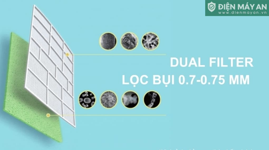 Sử dụng bộ lọc kép tiên tiến từ Dual Filter không những giúp cho không khí trong lành