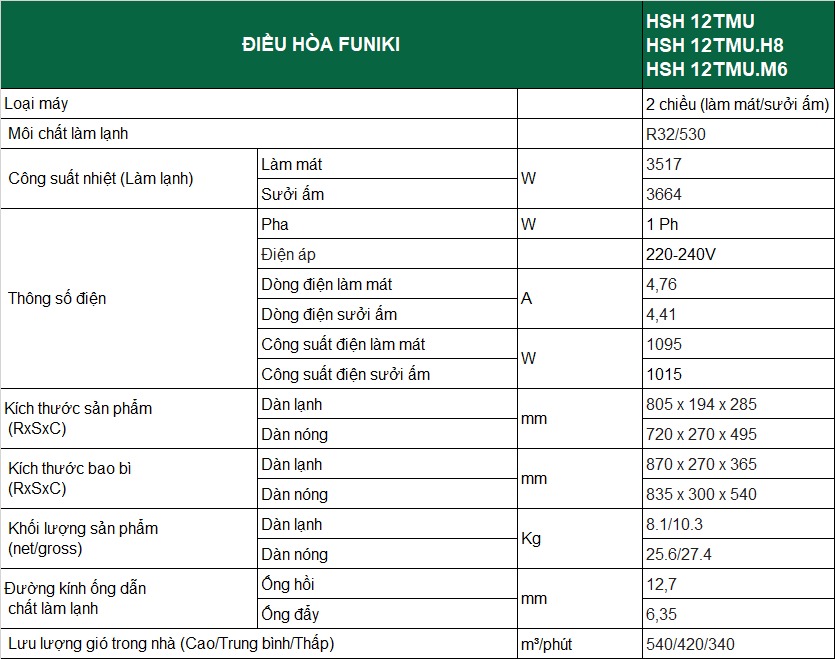 Với công suất 12000BTU, chiếc điều hòa Funiki 2 chiều HSH12TMU này sẽ là lựa chọn rất lý tưởng cho những căn phòng có diện tích từ 15 - 20m2.
