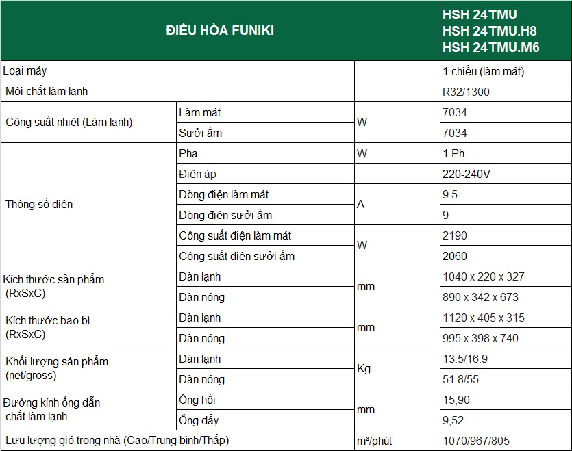 Nhìn chung, Điều hòa Funiki 24000 BTU 2 chiều HSH24TMU sở hữu nhiều tính năng như có tốc độ làm lạnh nhanh với chế độ Turbo, khả năng lọc bụi bẩn, không khí, hạn chế vi khuẩn và các tác nhân gây hại khác với lưới lọc Nano bạc,... sẽ là sự lựa chọn đáng cân nhắc cho bạn và gia đình. Sản phẩm thích hợp cho những không gian có diện tích từ 30- 40m2. Liên hệ tại Fanpage của Điện máy Quang Hưng theo số Hotline 099 339 5668 để được sở hữu thiết bị tiện ích và hiện đại này nhé.