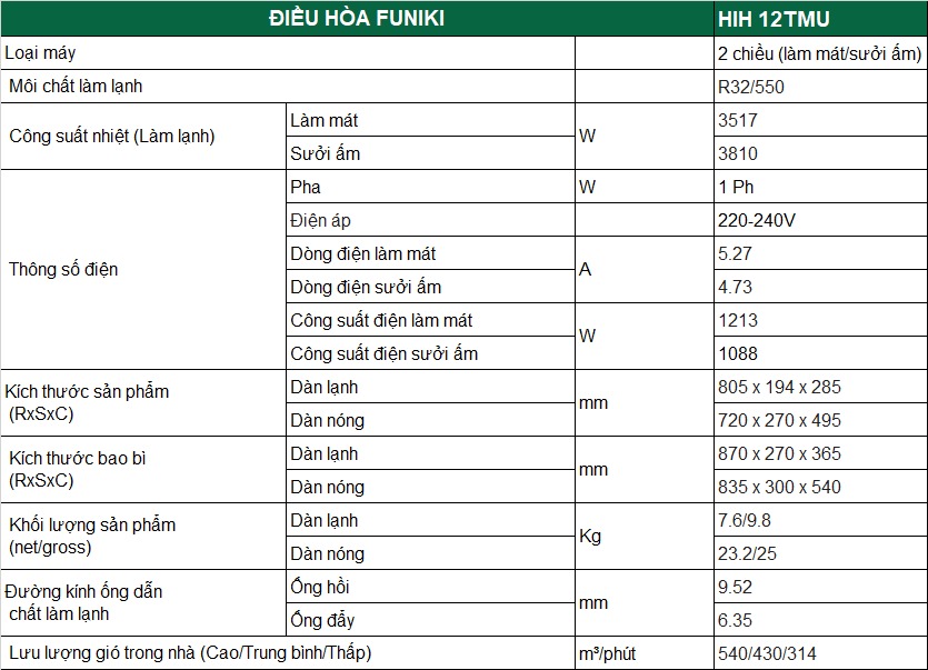 Nhìn chung, Điều hòa Funiki Inverter 12000 BTU 2 chiều HIH12TMU sở hữu nhiều tính năng như có tốc độ làm lạnh nhanh với chế độ Turbo, khả năng lọc bụi bẩn, không khí, hạn chế vi khuẩn và các tác nhân gây hại khác với lưới lọc Nano bạc,... sẽ là sự lựa chọn đáng cân nhắc cho bạn và gia đình. Sản phẩm thích hợp cho những không gian có diện tích từ 15 - 20m2. Liên hệ tại Fanpage của Điện máy Quang Hưng theo số Hotline: 099 339 5668 để được sở hữu thiết bị tiện ích và hiện đại này nhé.
