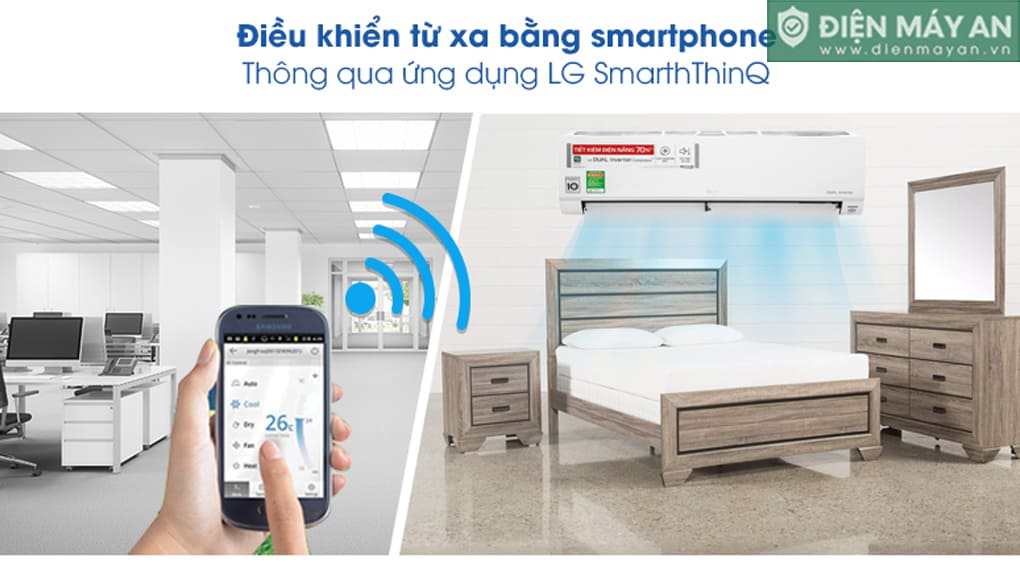 Nhờ vào công nghệ Dual Inverter, Điều hòa LG giúp tiết kiệm điện tối đa lên đến 70%, đồng thời vẫn duy trì khả năng làm lạnh mạnh mẽ. Công nghệ này không chỉ giúp giảm chi phí điện năng hàng tháng mà còn làm cho điều hòa vận hành êm ái, bền bỉ và kéo dài tuổi thọ sản phẩm.