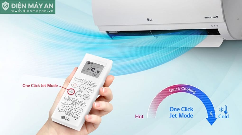 Chỉ với một nút nhấn, chế độ Jet Cool trên điều hòa LG Inverter 18.000BTU 1 chiều giúp hạ nhiệt độ phòng chỉ trong vòng 3 phút. Tính năng này đặc biệt hữu ích khi bạn cần làm mát nhanh chóng sau khi vừa trở về nhà vào những ngày nắng nóng gay gắt.