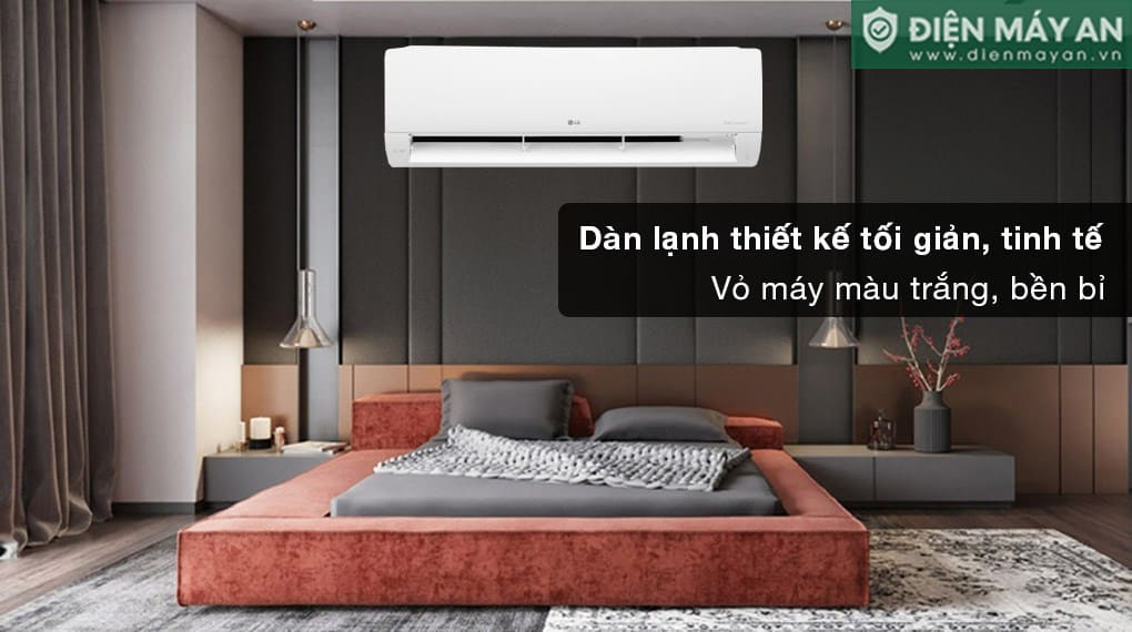 Điều hòa LG Inverter 18.000BTU 1 chiều V18WIN1 sở hữu thiết kế tối giản, tinh tế với gam màu trắng hiện đại. Chất liệu vỏ máy được làm từ nhựa cao cấp bền chắc, có khả năng giảm thiểu đáng kể bụi bẩn bám vào bề mặt, giúp dàn lạnh luôn sạch sẽ và thẩm mỹ.