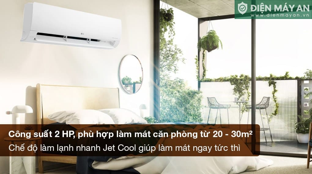 Điều hòa LG 18.000BTU 1 chiều có công suất hoạt động mạnh mẽ, phù hợp với những không gian từ 20 - 30m². Công nghệ Jet Cool cho phép máy hoạt động ở mức công suất cao nhất ngay khi được kích hoạt, giúp làm lạnh nhanh hơn 40%, mang lại cảm giác mát lạnh tức thì cho người dùng. Chế độ ngủ đêm tránh buốt của điều hòa LG giúp tự động điều chỉnh nhiệt độ phòng phù hợp trong suốt thời gian nghỉ ngơi, tránh hiện tượng lạnh buốt khó chịu vào ban đêm.