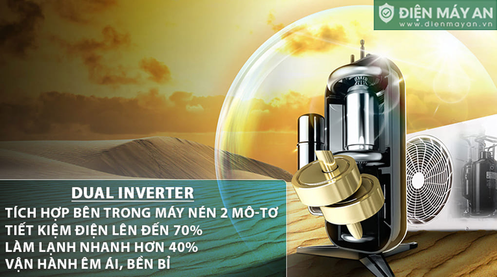 Với công nghệ Dual Inverter, Điều hòa LG có khả năng tiết kiệm đến 70% điện năng mà không ảnh hưởng đến tốc độ làm lạnh. Công nghệ này cho phép máy nén hoạt động hiệu quả hơn với hai mô tơ đặc biệt, giúp làm lạnh nhanh hơn 40% so với các loại máy nén thông thường và giảm rung lắc đến 80%.