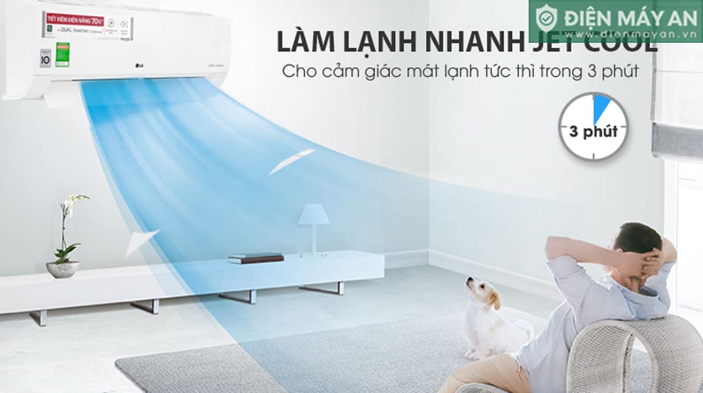 Với chế độ làm lạnh nhanh Jet Cool, V10APIUV có thể làm giảm nhiệt độ 5°C chỉ trong 3 phút, mang đến luồng khí lạnh lan tỏa đều khắp phòng, giúp bạn nhanh chóng tận hưởng không gian mát mẻ mà không phải chờ đợi lâu.