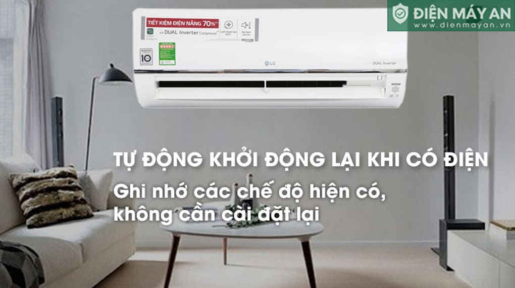 Khi mất điện, Điều hòa LG Inverter V10APIUV sẽ ghi nhớ các cài đặt hiện tại (như nhiệt độ, hướng gió, chế độ hoạt động) và tự động khởi động lại với các thông số đã lưu khi có điện trở lại, tiết kiệm thời gian và công sức cho bạn.