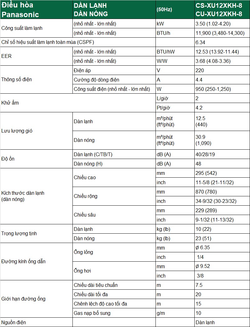 Với công suất 12000BTU, chiếc điều hòa Panasonic 1 chiều Inverter cao cấp XU12XKH-8 này sẽ là lựa chọn rất lý tưởng cho những căn phòng có diện tích từ 15 - 20m2.
