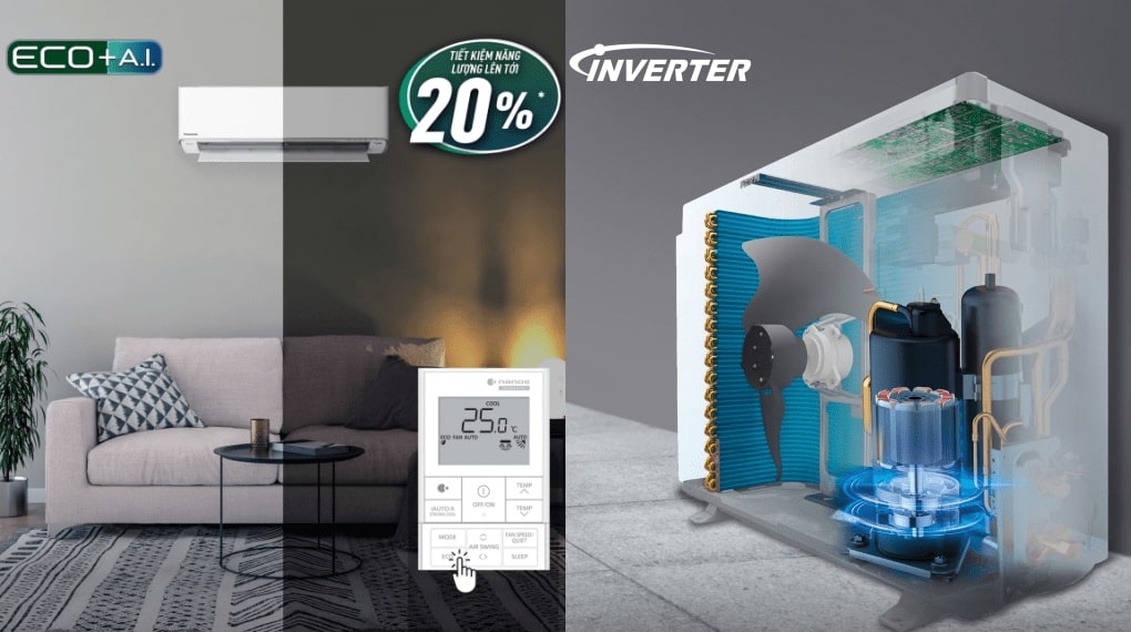 Điều hòa Panasonic 12000BTU 1 chiều Inverter U12XKH-8 sở hữu bộ điều khiển trí tuệ nhân tạo (A.I) với chế độ ECO đánh giá và nhận biết mức ECO tối ưu để tối đa hóa tiết kiệm điện năng tiêu thụ lên tới 20%, bên cạnh đó cũng đem tới sự thoải mái khi làm mát đồng đều.