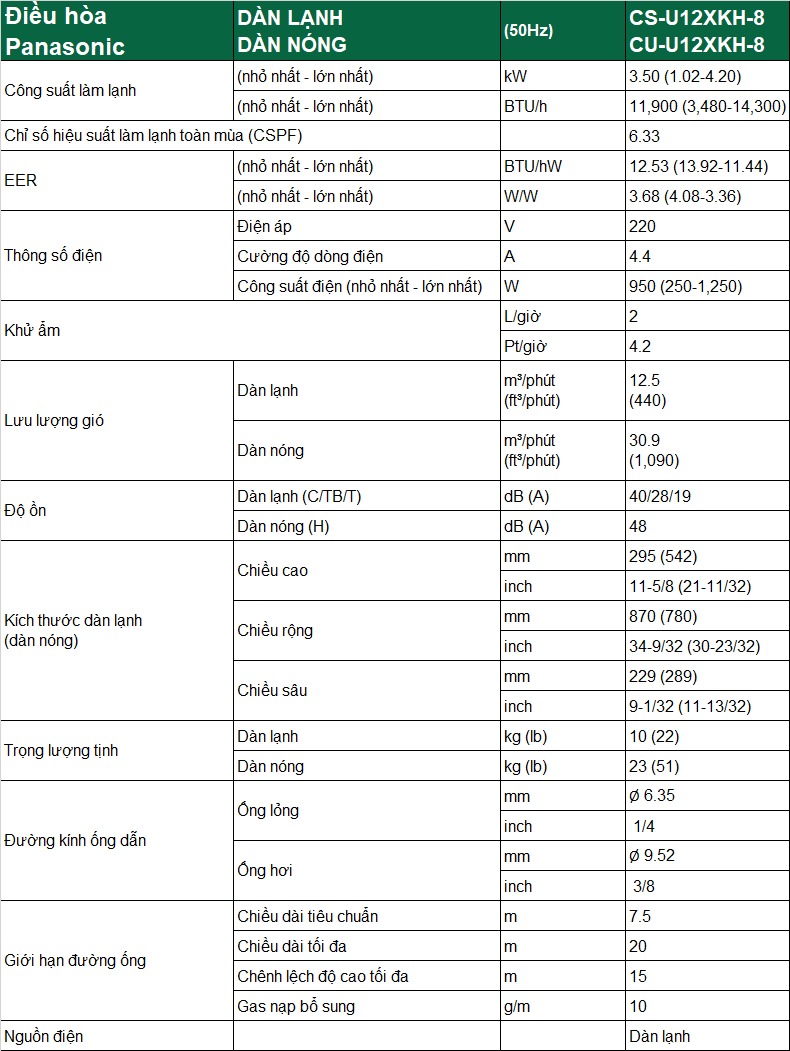 Với công suất 12000BTU, chiếc điều hòa Panasonic 1 chiều Inverter U12XKH-8 này sẽ là lựa chọn rất lý tưởng cho những căn phòng có diện tích từ 15 - 20m2.