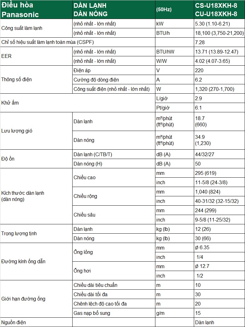 Với công suất 18000BTU, chiếc điều hòa Panasonic 1 chiều Inverter U18XKH-8 này sẽ là lựa chọn rất lý tưởng cho những căn phòng có diện tích từ 20 - 30m2.