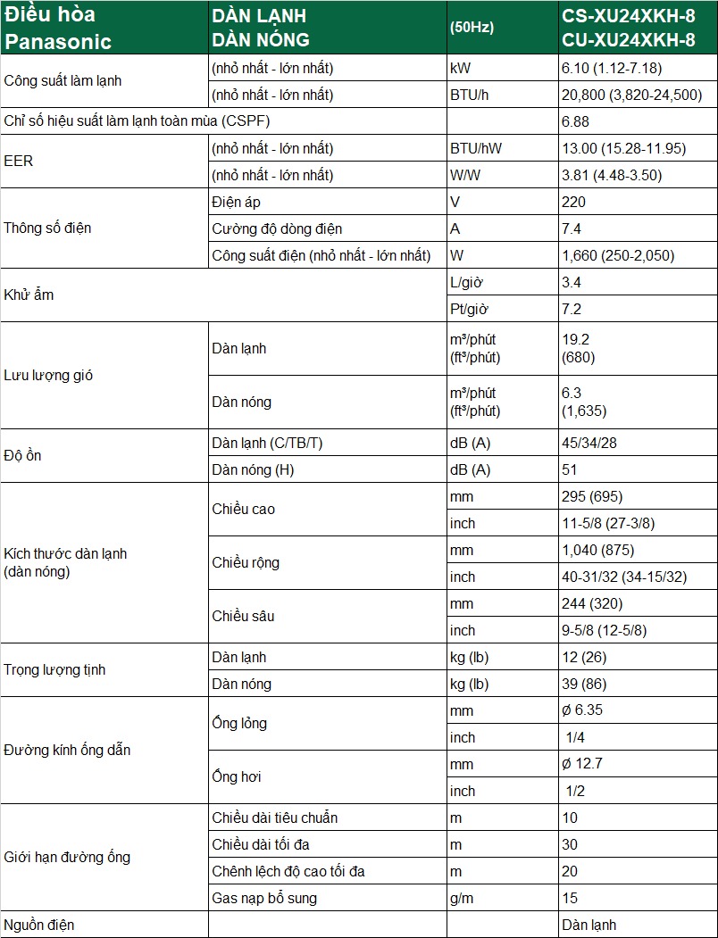 Với công suất 24000BTU, chiếc điều hòa Panasonic 1 chiều Inverter cao cấp XU18XKH-8 này sẽ là lựa chọn rất lý tưởng cho những căn phòng có diện tích từ 30 - 40m2.