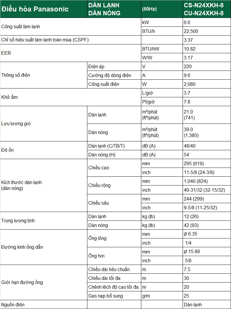 Với công suất 24000BTU, chiếc điều hòa Panasonic 1 chiều N24XKH này sẽ là lựa chọn rất lý tưởng cho những căn phòng có diện tích từ 30 - 40m2.