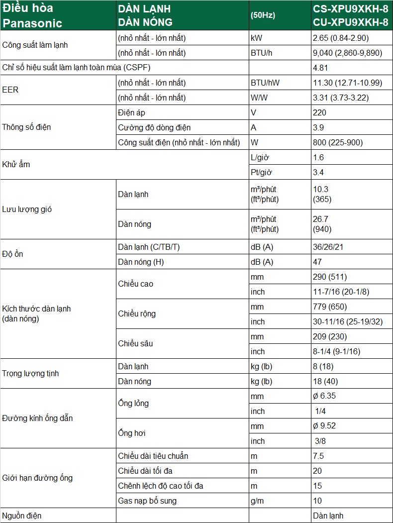 Với công suất 9000BTU, chiếc điều hòa Panasonic 1 chiều Inverter XPU9XKH-8 này sẽ là lựa chọn rất lý tưởng cho những căn phòng có diện tích dưới 15m2 như phòng khách, phòng ngủ, phòng làm việc…