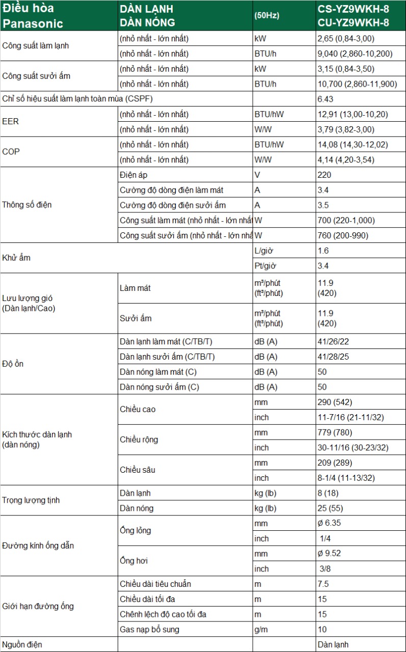 Nhìn chung, Điều hòa Panasonic 9000BTU 2 chiều Inverter YZ9WKH-8 này sở hữu thiết kế thanh lịch, sở hữu nhiều tính năng mới nổi bật như chế độ ECO + A.I, công nghệ nanoe™ X,... sẽ mang lại cho bạn những trải nghiệm tuyệt vời. Sản phẩm thích hợp cho những không gian có diện tích dưới 15m2.