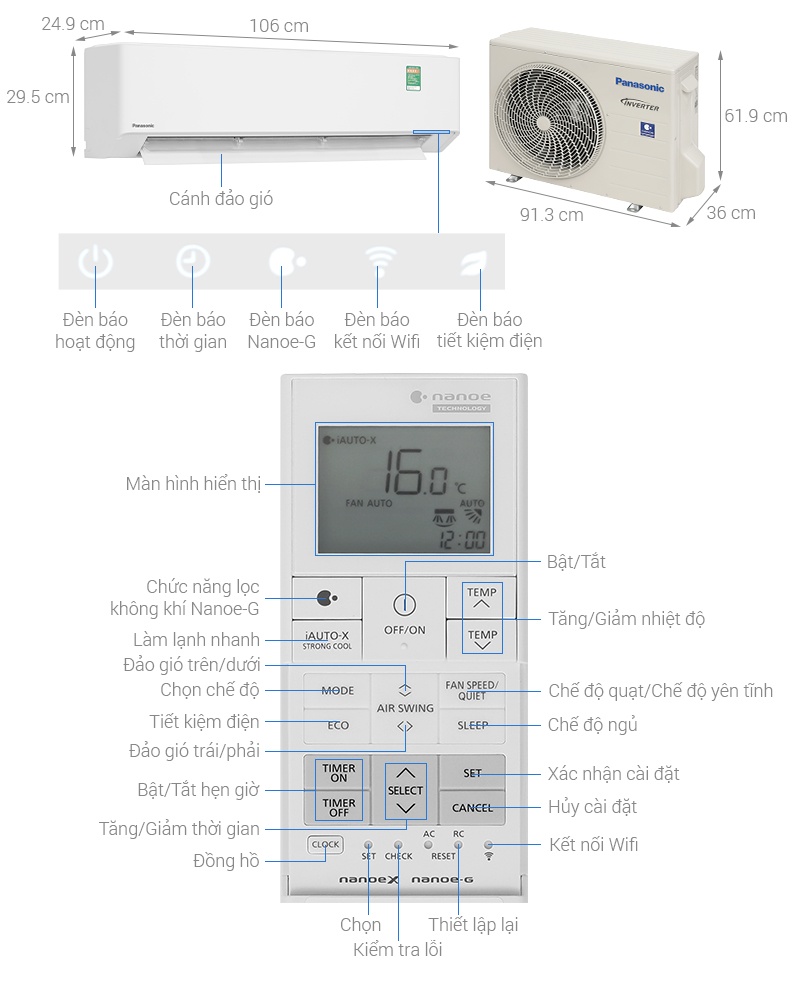 - Điều hòa Panasonic 1 chiều CU/CS-U18BKH-8 tích hợp kết nối WiFi, cho phép người dùng điều chỉnh nhiệt độ, cài đặt chế độ, bật/tắt và hẹn giờ từ xa dễ dàng qua smartphone, mang đến sự tiện lợi tối đa.