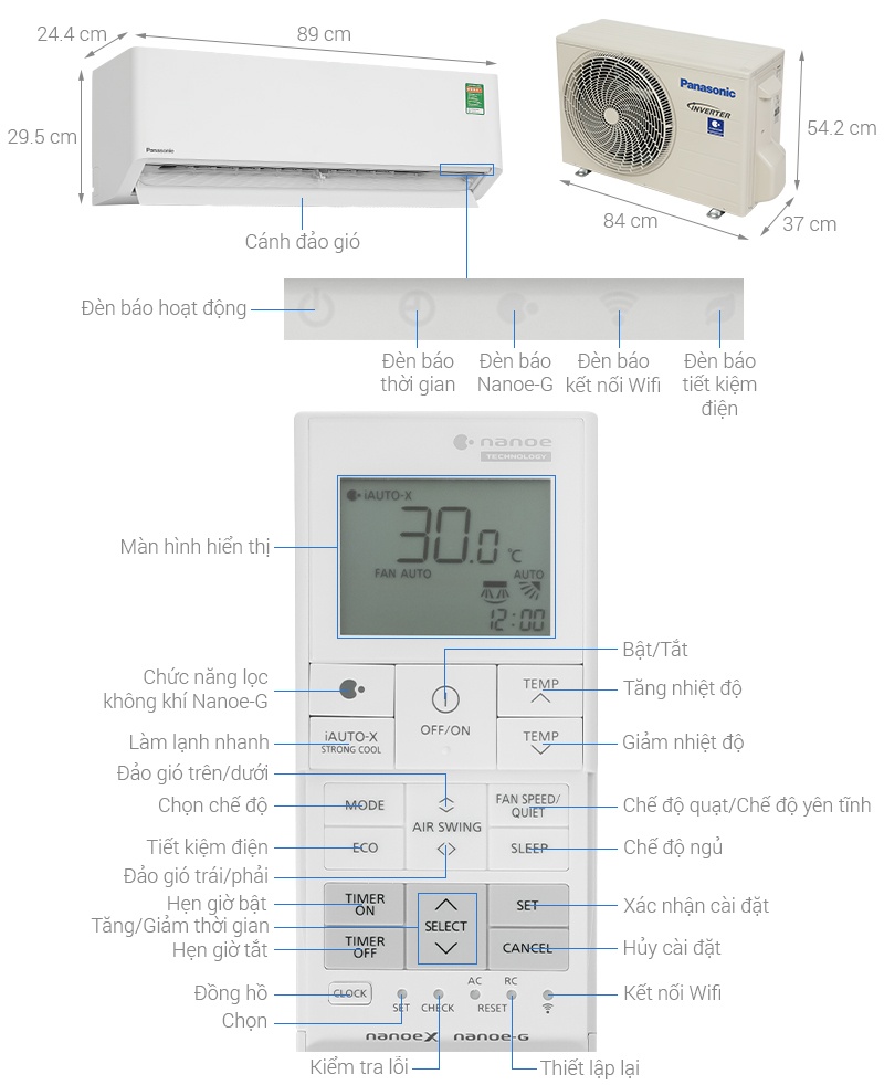 - Điều hòa Panasonic 1 chiều CU/CS-U9BKH-8 tích hợp kết nối WiFi, cho phép người dùng điều chỉnh nhiệt độ, cài đặt chế độ, bật/tắt và hẹn giờ từ xa dễ dàng qua smartphone, mang đến sự tiện lợi tối đa.