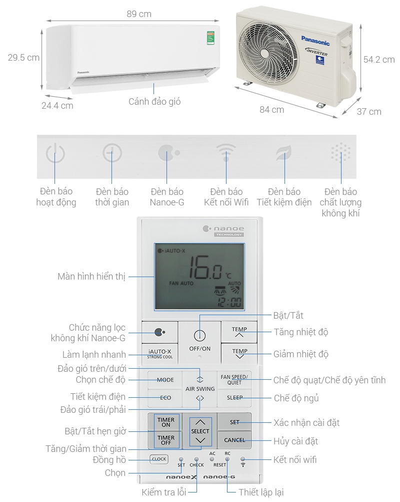 - Điều hòa Panasonic có chức năng tự động điều chỉnh hướng gió lên xuống bằng remote, giúp hơi lạnh lan tỏa đều khắp không gian.