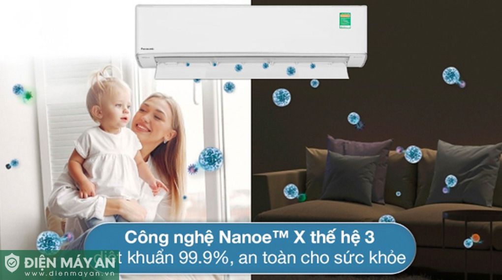 - Công nghệ lọc không khí Nanoe™ X hoạt động hiệu quả với cơ chế giải phóng ra các phân tử Nanoe X với kích thước siêu nhỏ, tiêu diệt các loại vi khuẩn, virus đến 99%, cùng với các chất gây dị ứng khác. Đặc biệt còn khử mùi hôi, làm cho không khí trong phòng lúc nào cũng tươi mát, trong lành, dễ chịu.