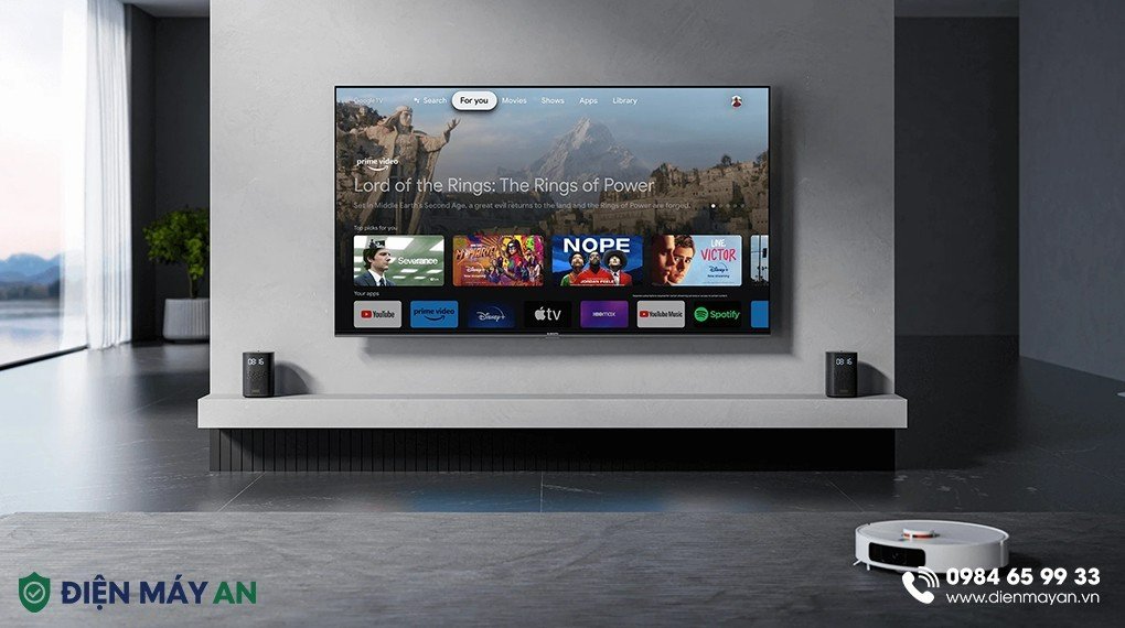 Hệ điều hành Google TV với Youtube, Netflix và Amazon Prime Video được cài đặt sẵn. Kết hợp cùng kho ứng dụng phong phú: VieON, Google Play, FPT Play, Galaxy Play (Fim+),... đáp ứng đa dạng các nhu cầu giải trí cho gia đình.