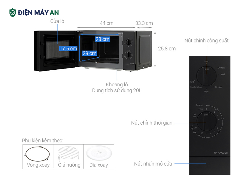 Với thiết kế nhỏ gọn, đa chức năng nấu nướng, và hiệu suất ổn định, Panasonic NN-GM22QBYUE là lựa chọn lý tưởng cho gia đình trẻ, người bận rộn hoặc căn hộ có diện tích bếp hạn chế. Hiện sản phẩm đang được bán chính hãng tại Điện máy Quang Hưng với mức giá ưu đãi, đi kèm chính sách bảo hành tiêu chuẩn Panasonic. Đặt mua ngay hôm nay để trải nghiệm sự tiện lợi trong từng bữa ăn hàng ngày. Liên hệ tại fanpage Điện máy Quang Hưng hoặc theo số Hotline 𝟎𝟗𝟗 𝟑𝟑𝟗 𝟓𝟔𝟔𝟖 để được tư vấn chi tiết chiếc lò vi sóng tiện ích này cho gia đình nhé.