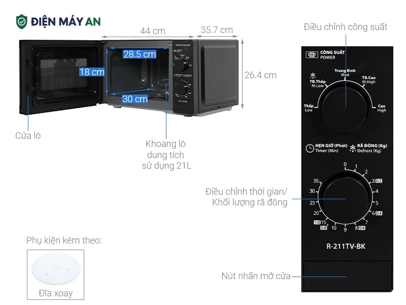 Người dùng có thể linh hoạt lựa chọn chế độ phù hợp với từng loại thực phẩm. Nhờ hiệu năng ổn định, R-211TV-BK trở thành trợ thủ đắc lực giúp bạn chế biến món ăn nhanh gọn và tiện lợi mỗi ngày.
