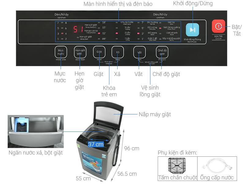 | Lồng giặt: | Lồng đứng |