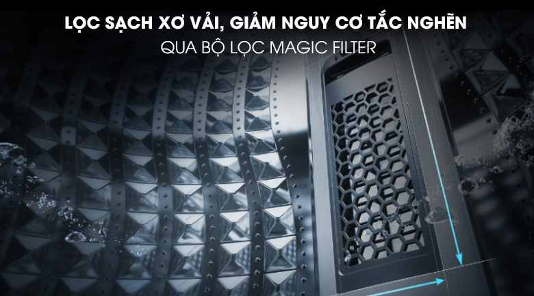 Bộ lọc Magic Filter của máy giặt cửa trên WA16R6380BV/SV giúp lọc sạch xơ vải, lông tơ và bụi bẩn, như thế sẽ giảm được nguy cơ tắc nghẽn đường ống thoát nước. Trong đó, bộ lọc có thiết kế mới với kích thước lớn hơn, dễ dàng tháo rời và vệ sinh.