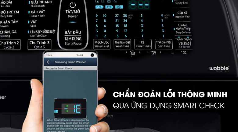Người dùng có thể tải và cài đặt ứng dụng Smart Check về điện thoại của mình để theo dõi hoạt động của máy giặt WA16R6380BV/SV. Hệ thống sẽ tự động theo dõi và phát hiện sự cố nếu có, đồng thời cũng cung cấp giải pháp cho bạn chủ động hơn trong việc sửa chữa và sử dụng.
