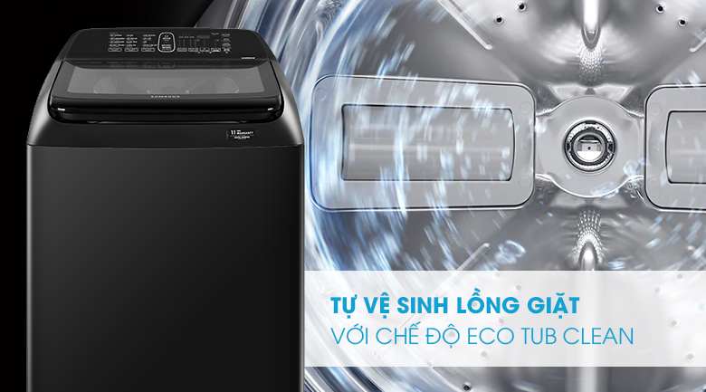 Máy giặt WA16R6380BV/SV có thể tự vệ sinh lồng giặt với chế độ Eco Tub Clean giúp loại bỏ những lượng bột giặt còn sót lại và bụi bẩn tích tụ thông qua các bước ngâm nước, rung và xoay làm sạch.
