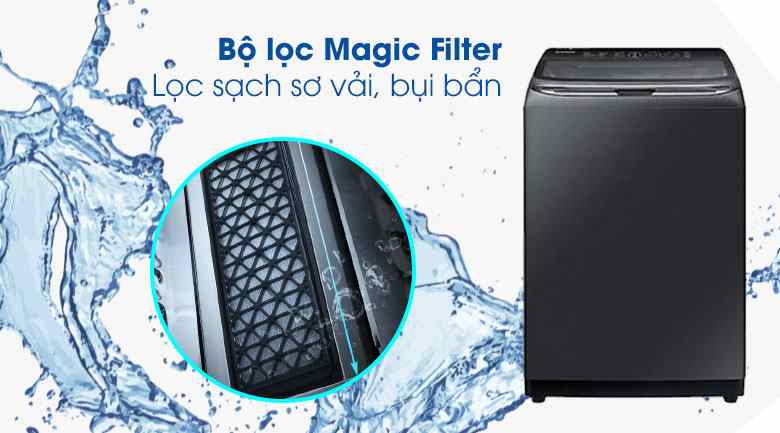 Máy giặt lồng đứng Samsung WA22R8870GV/SV tích hợp bộ lọc Magic Filter lọc sạch xơ vải, lông tơ và bụi bẩn, giữ quần áo luôn sạch và giảm nguy cơ tắc nghẽn đường ống thoát nước. Bộ lọc này có kích thước lớn so với các loại thông thường, dễ dàng tháo rời, thuận tiện cho việc vệ sinh.