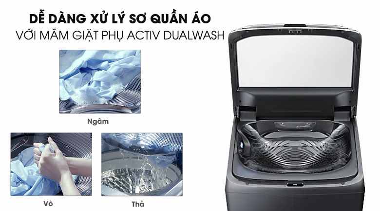 Giúp xử lý sơ vết bẩn đơn giản và hiệu quả. Máy giặt lồng đứng WA22R8870GV/SV sở hữu công nghệ Activ Dualwash giúp bạn dễ dàng làm sạch các vết bẩn cứng đầu ở các vị trí khó giặt trước khi bỏ vào lồng giặt bên dưới. Đường nước tích hợp sẵn bên cạnh hoạt động chỉ với 1 nút nhấn, người dùng sẽ không cần phải lấy nước từ bên ngoài khiến chúng nhỏ giọt khắp nơi.