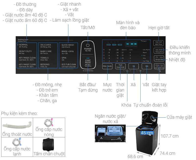 | Bảng điều khiển: | Song ngữ Anh - Việt cảm ứng có màn hình hiển thị |