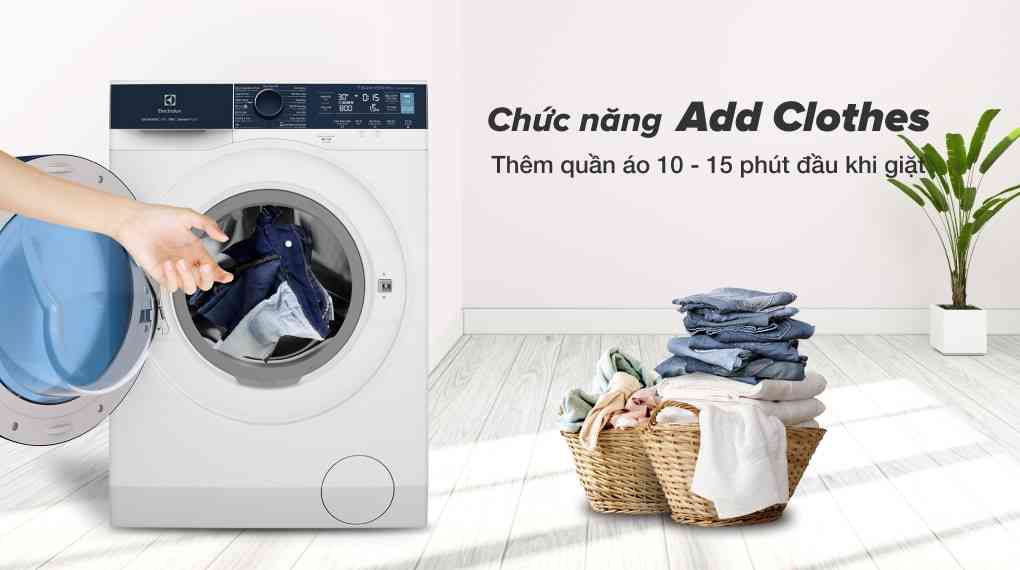Thêm quần áo trong khi giặt (Add Clothes) của EWF1042Q7WB được Electrolux thiết kế giúp người dùng có thể cho thêm quần áo vào lồng giặt trong khoảng thời gian 10-15 phút từ khi quá trình giặt bắt đầu. Rất tiện lợi và tiết kiệm thời gian thay vì không cần phải giặt xong mẻ này rồi mới giặt tiếp mẻ đồ khác.