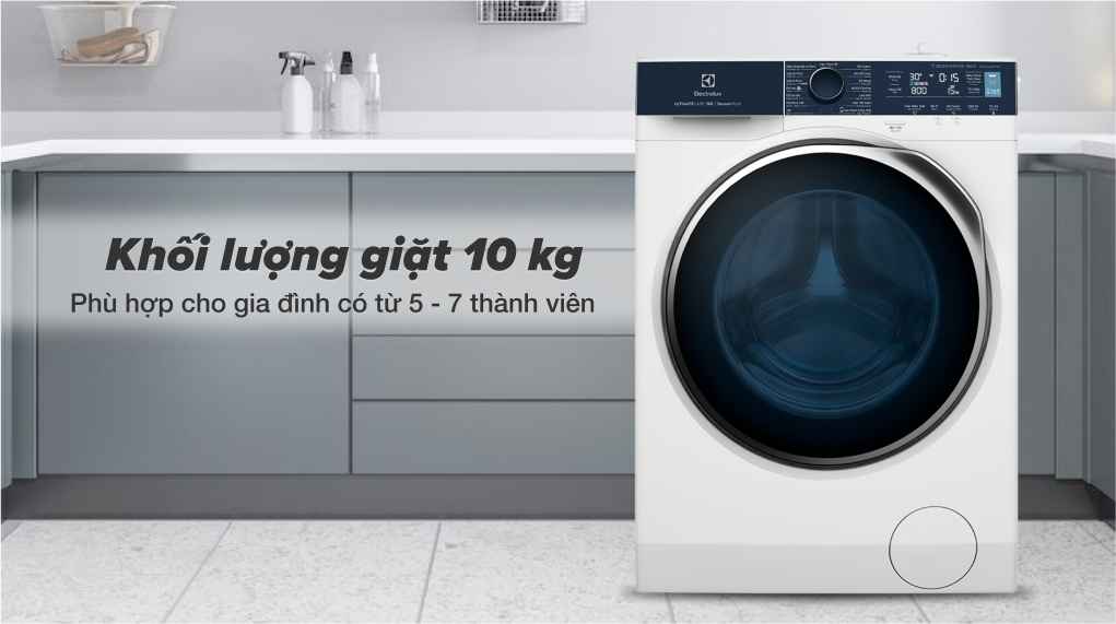 Máy giặt Electrolux inverter 10 kg EWF1042Q7WB có khối lượng giặt đáp ứng tốt cho những hộ gia đình có từ 5 - 7 thành viên. Do vậy, quần áo có thể được gom giặt trong một lần, rất tiện lợi.