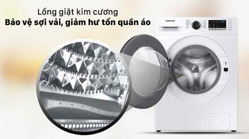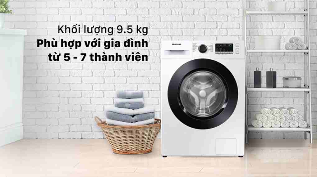 Ngoài ra, máy giặt Samsung với khối lượng giặt 9.5 kg khiến bạn an tâm trong việc, đáp ứng nhu cầu giặt lượng quần áo lớn của gia đình từ 5 - 7 thành viên.